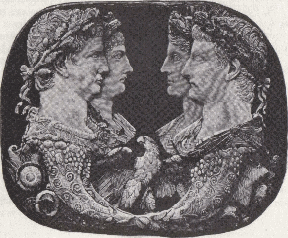 LEFT - EMPEROR CLAUDIUS AND HIS WIFE AGRIPPINA THE YOUNGER RIGHT-CLAUDIUS' UNCLE TIBERIUS AND HIS MOTHER LIVIA