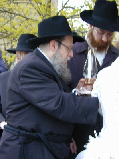 grandfather of the bride, Rabbi Hendel of Montreal, is reading the Ksubah