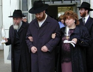 Shlomo Zalman and Rebbetzin Feiga Sirota are accompanying the groom Yosef
