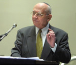 Rabbi Yitzchok Adlerstein calls the Talmud, "the world's oldest continuously-practiced legal code." (42) ![]() Rabbi Justice Menachem Elon, Israel Supreme Court judge (retired), speaking to the students at McGill University in October 2002. Rabbi Elon wrote the Israeli court opinion that formed the core of the argument used in the brief submitted to the US Supreme Court by Nathan Lewin. Elon also reviewed and approved Lewin's brief after it was written. Rabbi Justice Elon has written a three-volume work on Jewish law, and is billed as the world's foremost expert on the subject. The McGill Reporter quotes him: "Within Jewish heritage, there are many different views and opinions which have contributed to the depth and richness of Jewish law through all the generations. Such an approach is essential to Jewish thought."(34) ![]()