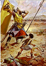 King Saul, a giant among men ![]() David, son of Jesse, started as a shepherd and excelled as a warrior. On King Saul's death in 1004 B.C., he was chosen king of the Southern Tribes, but was not accepted by the Northern Tribes until 997 B.C., after a civil war (2 Samuel 1). David wrote many of the Psalms in the Bible, and ruled until 965 B.C. ![]()