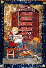 Ezra the Scribe (10) came to Jerusalem with the Torah sometime between 458 B.C. and 398 — accounts differ. Some scholars suggest this Torah was the Oral Law, others that it was the Old Testament. Some say he authored the Torah, others that he rewrote it from memory. Some say he reconstructed it from fragmentary parchments, others that he merely edited the Torah and rewrote it in Assyrian script. Whatever his role, apparently the very existence of Jewish law was for a while dependent on Ezra alone, and he is counted among the giants in Judaism. ![]() Ezra the Scribe in an 8th Century painting. (39) The burning of Solomon's Temple was not the only occasion when the Old Testament was lost. As told in the Talmud: "… in ancient times when the Torah was forgotten from Israel, Ezra came up from Babylon and established it. [Some of] it was again forgotten and Hillel the Babylonian came up and established it. Yet again was [some of] it forgotten, and R. Hiyya and his sons came up and established it." — Babylonian Talmud, Tractate Sukkah 20a. ![]()