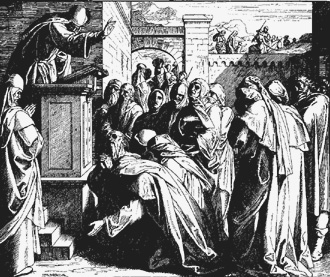 Since The Bible Timeline does not specify which "Torah" Ezra brought with him, and since that Torah had been "codified," we are left with the clear impression that Ezra's "Torah" may have been Oral Law. However, The Jewish Encyclopedia states that Ezra reestablished the text of the Pentateuch, introduced Assyrian script, and questioned some words in the text. The Jewish Encyclopedia infers that Ezra and Elijah together edited the text of the Old Testament. Ezra was the disciple of Baruch ben Neriah (Cant. R.); his studies prevented him from joining the first party returning to Jerusalem in the reign of Cyrus, the study of the Law being of greater importance than the reconstruction of the Temple. According to another opinion, Ezra remained behind so as not to compete, even involuntarily, with Jeshua ben Jozadak for the office of chief priest. Ezra reestablished the text of the Pentateuch, introducing therein the Assyrian or square characters, apparently as a polemical measure against the Samaritans (Sanh. 21b). He showed his doubts concerning the correctness of some words of the text by placing points over them. Should Elijah, said he, approve the text, the points will be disregarded; should he disapprove, the doubtful words will be removed from the text (Ab. R. N. xxxiv.). Ezra wrote the Book of Chronicles and the book bearing his name (B. B. 16a). — The Jewish Encyclopedia (26) The "Torah" had been forgotten during the Babylonian Captivity, according to this passage from the Tractate Sukkah of the Talmud: GEMARA. … For in ancient times when the Torah was forgotten from Israel, Ezra came up from Babylon and established it. [Some of] it was again forgotten and Hillel the Babylonian came up and established it. Yet again was [some of] it forgotten, and R. Hiyya and his sons came up and established it. — Babylonian Talmud, Sukkah 20a Is it possible that the "Torah" that was lost from Israel and brought back by Ezra was really the Old Testament? This passage from the 1908 Catholic Encyclopedia states that according to Jewish traditions, Ezra reconstructed the Old Testament from memory. (In the following, "Esdra" is another transliteration of "Ezra.") As is the case with many men who played an important part at momentous epochs in history, in the course of time Esdras's personality and activity assumed, in the minds of the people, gigantic proportions; legend blended with history and supplied the scantiness of information concerning his life; he was looked upon as a second Moses to whom were attributed all institutions which could not possibly be ascribed to the former. According to Jewish traditions, he restored from memory — an achievement little short of miraculous — all the books of the Old Testament, which were believed to have perished during the Exile; he likewise replaced, in the copying of Holy Writ, the old Phoenician writing by the alphabet still in use. Until the Middle Ages, and even the Renaissance, the crop of legendary achievements attributed to him grew up; it was then that Esdras was hailed as the organizer of the famous Great Synagogue — the very existence of which seems to be a myth — and the inventor of the Hebrew vocal signs. — Catholic Encyclopedia (27) Other passages in the Talmud state that Ezra put the "Torah" into Ashshurith script and the Aramaic language. GEMARA. … Originally the Torah was given to Israel in Hebrew characters and in the sacred [Hebrew] language; later, in the times of Ezra, the Torah was given in Ashshurith script and Aramaic language. [Finally], they selected for Israel the Ashshurith script and Hebrew language, leaving the Hebrew characters and Aramaic language for the hedyototh. Who are meant by the 'hedyototh'? — R. Hisda answers: The Cutheans [heathens]. And what is meant by Hebrew characters? — R. Hisda said: The libuna'ah script. — Babylonian Talmud, Sanhedrin 21b Ezra And Moses Equally RegardedIn the view of Talmud Sages, Ezra's role in Judaic history was as important as the role of Moses. GEMARA. … It has been taught: R. Jose said: Had Moses not preceded him, Ezra would have been worthy of receiving the Torah for Israel. Of Moses it is written, And Moses went up unto God, and of Ezra it is written, He, Ezra, went up from Babylon. As the going up of the former refers to the [receiving of the] Law, so does the going up of the latter. Concerning Moses, it is stated: And the Lord commanded me at that time to teach you statutes and judgments; and concerning Ezra, it is stated: For Ezra had prepared his heart to expound the law of the Lord [his God] to do it and to teach Israel statutes and judgments. And even though the Torah was not given through him, its writing was changed through him, as it is written. — Babylonian Talmud, Sanhedrin 21b The Sanhedrin continues in this vein: GEMARA. … And the writing of the letter was written in the Aramaic character and interpreted into the Aramaic [tongue]. And again it is written, And they could not read the writing nor make known to the king the interpretation thereof. Further, it is written: And he shall write the copy [mishneh] of this law, — in writing which was destined to be changed. Why is it called Ashshurith? — Because it came with them from Assyria. — Babylonian Talmud, Sanhedrin 22a In the following passages, the Sages go on to argue about the issue. Please visit and read the text. Whatever the truth of the various claims, it seems that at one point the entire Old Testament may have been in Ezra's hands. Ezra Creates "Frontier Of Fire"Ezra sought to preserve the distinctive nature of the Jewish experience. He lamented the affinity many Jews felt towards non-Jews and set about to correct the situation. He urged radical religious reform, and ordered Jews married to non-Jews to put aside their wives and families. Rev. Dr. Abraham Cohen, the renowned Talmud scholar chosen to translate the Tractates Sotah and Abodah Zarah for Soncino Press, suggests that the purpo