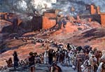 Final Destruction of Jerusalem ![]() Bar Kochba rebellion in Betar.(11) The destruction of Jerusalem was an important defeat in the Diaspora (dispersion of Jews through the world). Hostilities with Rome continued until the Bar Kochba rebellion in 135 A.D. Shimon Bar Kochba rode the "Messiah" prophesy to the position of warlord and commander in fortified Betar. However, a falling-out among the rabbis (including the famed Talmud Sage, Rabbi Akiba) divided the force, and the Jews were defeated by the Romans.(40) From then on, Emperor Hadrian exiled the Jews from Jerusalem and the ruins of the Temple. |