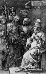 The Engraved Passion, Christ Before Caiaphas by Albrecht Durer, 1512 (Caiaphas rending his clothes)
