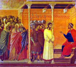 Pontius Pilate's Second Interrogation of Christ, by Duccio di Buoninsegna, 1308-1311