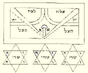 It is a curious fact that in all the voluminous discussion, the only point at issue was the employment of the false Messiah’s name in these amulets; not a voice was raised against the folly of amulets in general. The common impression probably was that they could do no harm and might serve as spiritual stimulants in the way of the wearer’s reassurance and mental comfort. This widespread discussion, however, marks the turning-point in the history of the medieval faith in amulets; since then it has gradually diminished and may now be said to be [page 550] practically extinct except in the Orient. The “Shulhan ‘Aruk” does not forbid amulets (see “Orah Hayyim,” §301, 24-27; §305, 17; §334, 14; “Yoreh De‘ah,” §179, 12). It is important to note the fact that the Jews, the “people of the Scripture”, employed mainly written parchments for such purposes, not bits of wood, bone, stone, or other natural objects. Modern Judaism of course approves the sentiments of Maimonides, who pronounced against them; he denies them all potency or virtue whatever (“Moreh”, iii. 37), and speaks of the “craziness of the amulet-writers, who hope to accomplish miracles by permutations of the Divine Name” (ib. i. 61, end). BIBLIOGRAPHY: On the Eibenschütz controversy, see the collected pamphlets [Hebr.], Lemberg, 1877; Eibenschütz’s own defense, [Hebr.], Altona, 1755; Graetz, Gesch. D. Juden, vii, note 7. [Caption under the drawing of the circular amulet:] This Amulet is claimed to be well approved, and protects the lying-in mother and her child against witchcraft, the evil eye, and demons, and is given in "Raziel," with explicit directions for use. Its authorship is ascribed to Adam. The four words outside of the circle are the names of the four rivers issuing out of paradise, Gen. ii 10. In the circle are Psalm, xci. 11; the names of Adam and Eve; also [Hebr.], which is equivalent to [Hebr.], Eve (in the [Hebr.] system, see AT-BASH, [Hebr.]; then [Hebr.], probably a misprint for [Hebr.], the female demon mentioned in Isaiah xxxiv 14; then come "the first Eve," and names of angels and of God ([Hebr.] = [Hebr.]: in this permutation each letter is represented by the next succeeding letter of the alphabet, thus [Hebr.], [Hebr.] etc.). Outside of the shield of David stand the initial letters of the well-known prayer by Nebvuia b. ha-Kana, [Hebr.], also the words, [Hebr.], "May Satan be torn asunder!" the innermost space finally contains words from Ex. xi. 8, and permutations of [Hebr.], a mystical name of God. |