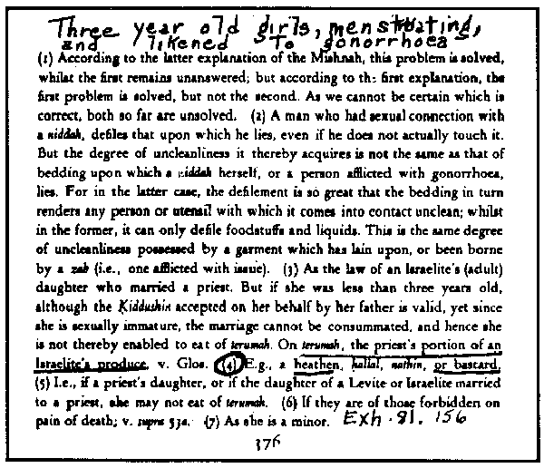 If you want to know where "Seedline" teaching is derived, see this same exhibit which is nauseating. Again, let me apologize to my lady readers. But you must see these milder examples of The Talmud in order to understand what it is all about.