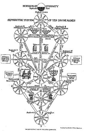 The outcome of the interaction of force and form, the physical world, called Malkuth or Kingdom. This quaternary is a Kabbalistic representation of God‑the knowable, in the sense that it the most primitive representation of God we are capable of comprehending; paradoxically, Kabbalah also contains a notion of God‑the‑Unknowable which transcends this glyph, and is called En Soph. There is not much we can say about En Soph, and what we can say we will postpone for later.