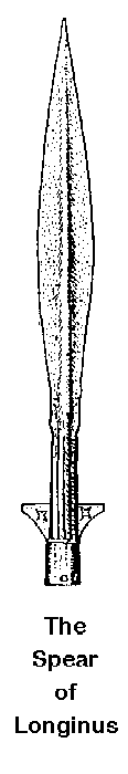 [**] There is a whole group of historians from various countries that have taken interest in what is believed to be the original Lance or Spear of Longinus. It is believed to have been carried into Europe with the Christians of the Northern House of Israel as they fled Roman and Pharisee. persecution. General George Patton was trying recover it from its secure location but it had disappeared from Germany at the fall of the Third Reich. Above is a sketch of what is believed to be this original lance, or spear used to pierce the Side of Christ on the Cross. Whether or not this Spear is the original, I am not about to speculate, but the Spear of Longinus would have looked very much like the picture shown here.