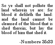 Most Christians have never thought of this, but when Christ's Blood flowed onto the ground at Calvary at Jerusalem, His Blood defiled that land according to The Law. That land cannot be cleansed but by the blood of them that shed it. Since no blood of the Serpent's Seed murderers, or their children as the Pharisees asked has ever been shed upon that land to avenge the Blood of Jesus Christ, old Jerusalem is still defiled unto this day! This is why Almighty God had to move His People out of that defiled Israel land into some other land that was not defiled. * This is why for two thousand years, ancient Israel has never been at peace and it never will be until Christ's Blood is avenged and the land cleansed again in the Biblically required manner.